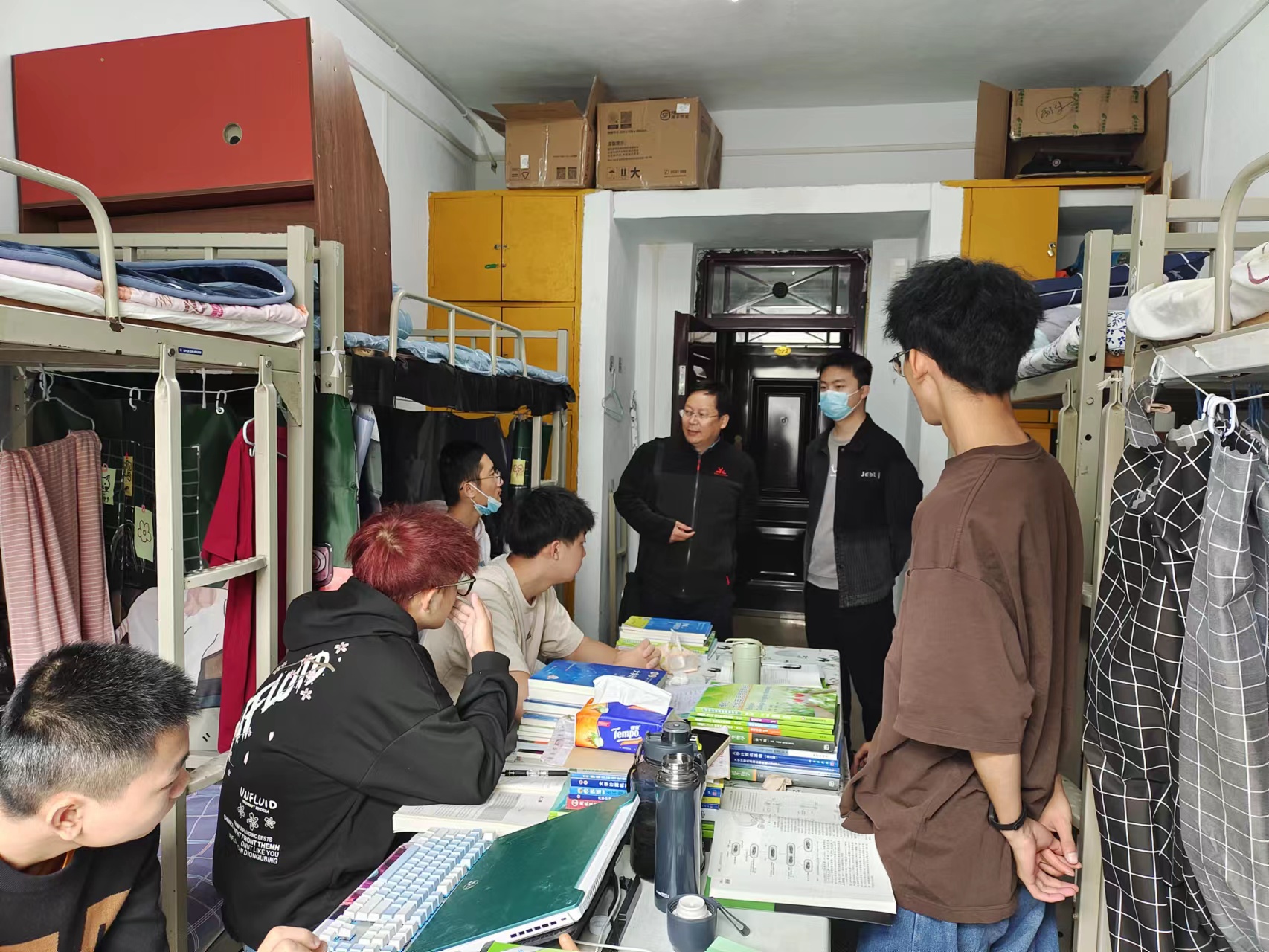目前,领导教师已与宿舍及同学建立了联系,部分已通过多种形式与同学们开展活动,并通过微信群、QQ群等方式与学生建立长期联系,关心学生学习生活状态。院党委书记李保华通过与联系学生宿舍座谈,听取同学们对学院工作的意见和建议,交流学习、生活、未来规划等情况,并通过方法论的层面指导同学们养成情绪疏导、学习养成方法。院长孔祥会深入宿舍看望同学们的情况,关心同学们的学习、生活、情绪状况,为学生提供一对一指导。班主任赵贤亮、高肖飞在课余走访同学们宿舍,了解同学们日常,关注学生各项动态。崔长海老师邀请学生一同餐厅就餐,拉近了与学生的距离……学生们也纷纷表示在与老师们的交流过程中感受到了来自学校、学院、老师的温暖与关爱。