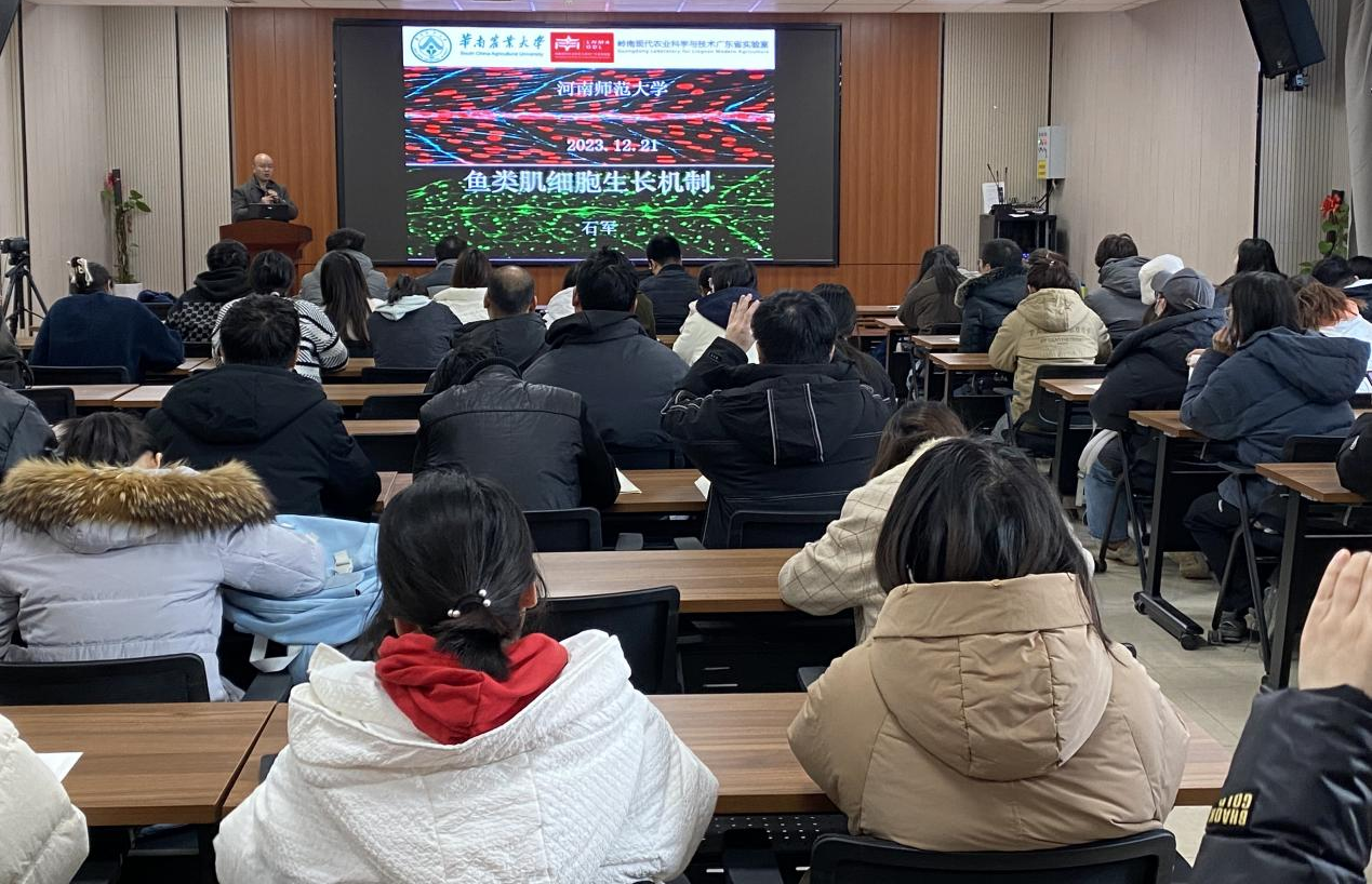 石军教授的报告内容丰富,讲解深入浅出,使与会师生对鱼类肌肉生长、肌肉品质形成有了更深层的认识。报告会后,我院师生积极发言,与石军教授进行热烈交流。
