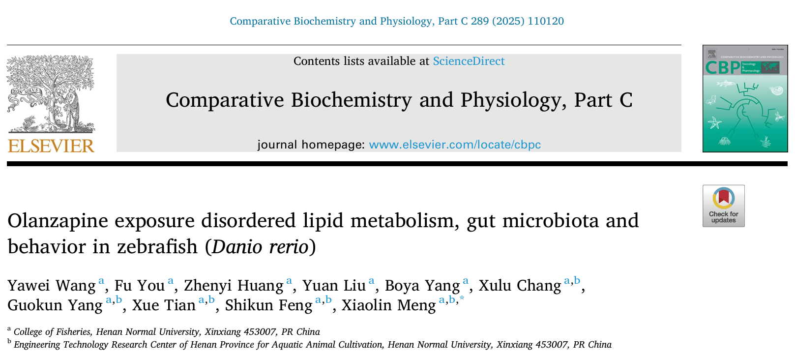 相关研究成果已在环境科学和生态学三区期刊《Comparative Biochemistry and Physiology, Part C》上在线发表。课题组王亚娓同学为第一作者,孟晓林老师为通讯作者。