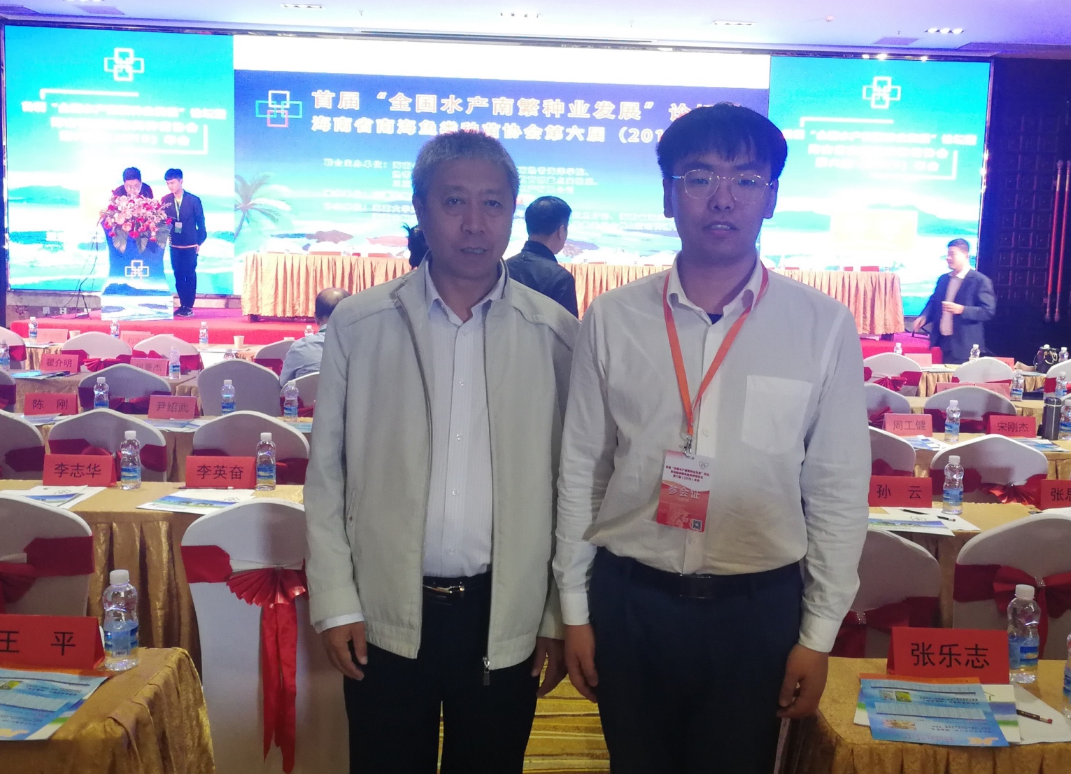 2019年12月7日,首届“全国水产南繁种业发展论坛”暨海南省南海鱼类种苗协会第六届(2019)年会在海南三亚顺利举行。会议由海南省南海鱼类种苗协会、海南热带海洋学院、热带海洋生物资源利用与保护教育部重点实验室、三亚市农业农村局和海南晨海水产有限公司联合主办,共有来自全国科研院所、相关高校和企业的600余人参会。我团队李学军老师和王磊老师参加了此次论坛。