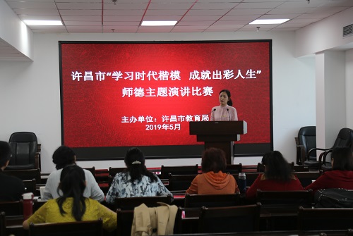 比赛现场,34名参赛选手结合工作实际,紧扣“学习时代楷模,成就出彩人生”主题,联系学习张玉滚先进事迹的感悟,真实反映和热情讴歌了近年来为教育事业做出贡献的优秀人民教师的先进事迹。选手以自己的亲身经历讲述了从教以来的“酸甜苦辣”,生动诠释了对“人民教师”这一职业的理解和感悟;选手分享自己学习河南最美教师的体会,诠释了我市广大教师默默无闻、无私奉献的精神;选手以一名“特岗教师”身份,讲述了乡村学校里一个个真实生动、感人肺腑的故事。参赛选手们个个精神饱满,热情洋溢,演讲内容丰富、主题鲜明、案例生动,展示了我市广大教师爱岗敬业、无私奉献的精神风貌和高尚情怀,表达了积极献身许昌教育事业的愿望,选手的精彩演讲不断赢得评委和现场观众的阵阵掌声。