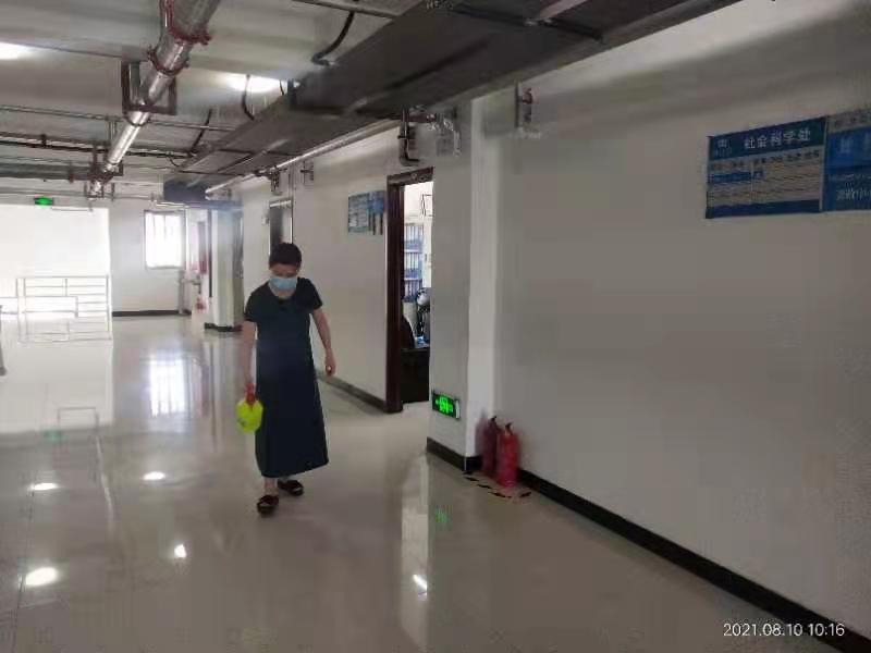为贯彻落实学校《关于2021-2022学年第一学期开学教职工有序返新返校工作的通知》(师大疫防指办〔2021〕11号)要求,结合自身疫情防控情况,为秋季学期安全、有序开学奠定坚实的基础,近日,社会科学处联合科技处对致远楼5层的公共区域及各办公室进行卫生打扫、杂物清理及全方位消杀作业。 消杀工作不留死角、不留盲区,特别针对高频接触设施进行重点消毒,保持了整体环境的清洁,并坚持经常开窗通风换气,保持楼道及室内空气新鲜,做到疫情防控常态化,坚决筑牢新学期防疫屏障。