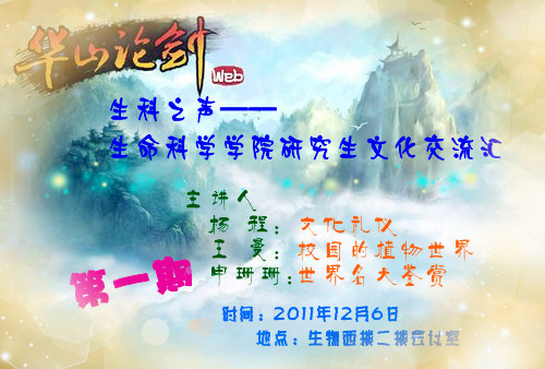 为丰富广大研究生的业余生活,展现我院研究生的自我风采,同时也给广大研究生提供一个锻炼自我、提高自我的机会,特举办此文化交流汇。此活动旨在使同学们在课余时间相互交流,相互沟通,相互学习,同时把本人最擅长的知识领域展现给大家,增进彼此了解。
