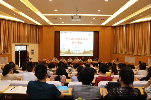 盛夏时节,炎炎酷暑,7月27日上午9:30,生命科学学院“增进友谊,共筑未来”95级校友毕业20年聚会在生物报告厅隆重举行。校党委常委、副校长、时任生科院95级辅导员岳杰勇,校党委常委、党委宣传部部长、时任生科院95级辅导员聂立清,校友工作办公室主任魏海琴,学院老院长、为95级校友讲授《遗传学》课程的任课教师卢龙斗,任课教师代表李明军、牛红星,学院领导丁笑生、余国营、陈勇、陈建军、杨献光以及从国内外赶到母校的近80名校友等见证聚会。会议由95级校友董新尚主持。