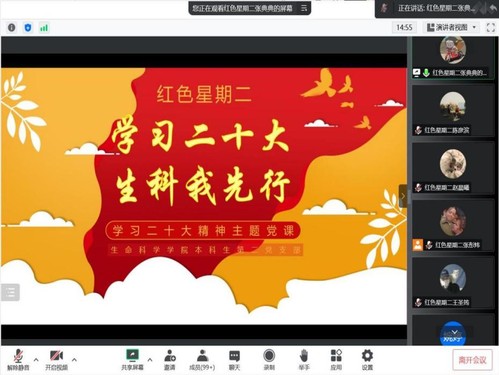 活动分“星星之火”与“燎原之势”两个阶段。第一阶段中,各专业学生党员、预备党员、入党积极分子组成理论学习小组,线上线下结合开展研讨会,深入学习领会习近平总书记系列重要讲话精神,始终牢记“爱国、励志、求真、力行”的谆谆教诲,以科学理论为武装,学习研究党的二十大精神。第二阶段中,参与集中研学的学生整理好学习成果深入各专业宿舍,开展宣讲活动,通过近距离分享新见解,多角度交流新感触,全方位落实新行动,带领同学们学习党的二十大报告中提出的新观点、新思想、新论断,结合各专业学科特点,认真体悟会议精神,提高政治思想站位,牢固树立理想信念,宣讲生动且有针对性,使自信自强的精神力量直抵学生内心。生科学子纷纷表示将坚定不移听党话、感党恩、跟党走,让青春在全面建设社会主义现代化国家的火热实践中绽放绚丽之花。