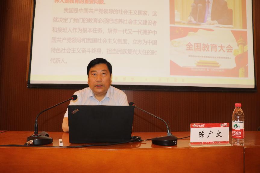 陈广文以“如何做一名优秀的大学教师”为题目,从习近平总书记提出“培养什么人,怎样培养人,为谁培养人”教育首要问题,到“三个牢固树立”、“四有好老师”、“四个引路人”、“四个相统一”、“三本领”、“三传三塑”、“大先生”及“经师”“人师”的统一这八个层面系统梳理阐释了总书记对新时代教师的期望和要求,并结合自身发展和工作经验,强调新时代教师要精通“道术”、“学术”、“技术”、“艺术”与“仁术”,不忘立德树人初心,牢记为党育人,为国育才使命。