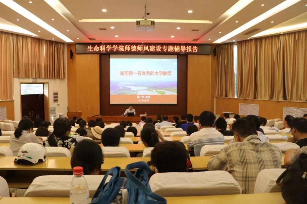 9月5日下午,生命科学学院在生物报告厅组织开展师德师风建设专题辅导报告会。学院党委特邀新乡工程学院党委书记、河南师范大学学术委员会主任、平原书院院长陈广文教授作专题辅导报告。生命科学学院全体教职工参加会议,会议由学院党委书记王毅主持。