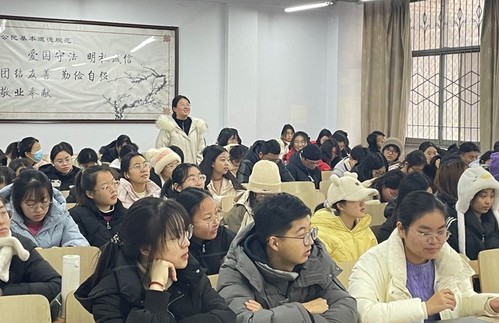 首先,董志萍指出,2023级同学作为大一新生,面对即将到来的第一次大型考试,紧张和焦虑在所难免,但更重要的是科学备考,调整心态,积极应对。随后,她结合自身学习经历,从大学学习生活的角度出发,给同学们提出了切实可行的意见和建议,叮嘱同学们要有“钉钉子精神”,要学会“刻意练习”,要有紧迫感,把握每一次机会,重视每一个时间节点,有所为有所不为,严格遵守考试纪律,合理安排复习时间,明确方向,踏实备考。