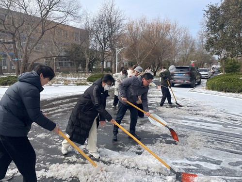 面对冰和雨雪的考验,行动是最好的融雪剂。学院领导高度关注此次除雪行动。老师和同学们不畏严寒,团结协作,拿起扫把、铁铲热火朝天地清扫院门口积雪,这忙中有序的身影成为冬日校园里一道靓丽的风景线。