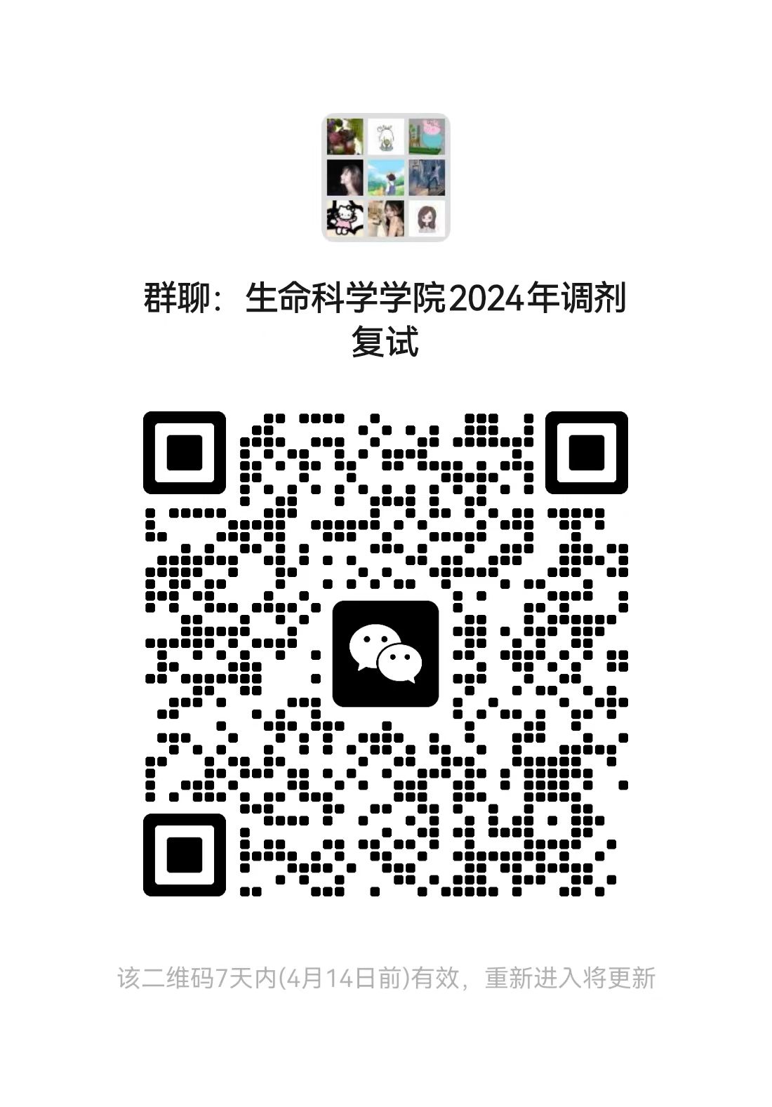 6. 为方便信息沟通,请接到调剂复试通知的考生,确认复试通知后扫描下方二维码进群,在此前进群人员一律无条件踢除。进群必须实名制(姓名-调剂专业及方向),否则视为与复试无关人员,将被强制出群。同时,请各位进群考生注意,本群禁止聊天刷屏,如有问题咨询首选电话联系。如有违反,将被移出。请各位考生知悉并严格遵守。