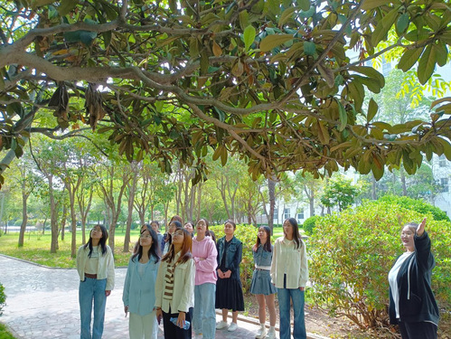 此次活动围绕美景欣赏、知识普及和互动问答三个环节。在美景欣赏环节中,史锦锦带领学生赏春花、观春水、沐春光,领略春意、享受自然。结合实际环境,史锦锦根据知识储备为学生进行玉兰花等植物的专业讲解,重点强调了它们的外形特点、生长环境、生态习性及文化意义,呼吁学生从自身做起,保护环境,维护生态多样性。知识普及后,学生结合相关学科知识积极提出问题,并与讲解员互动交流,进一步探讨专业知识。此次讲解,将理论与实践结合,在确保讲解生动有趣的前提下渗透专业知识,加深学生的理解。活动结束后,学生纷纷表示,通过实地观察和讲解,对植物的相关习性由了更直观的认识,也对生物多样性保护的重要性有了更深刻的理解。