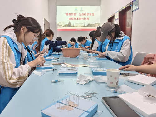 为丰富校园文化生活,彰显生物学科的风采,培养同学们的动手能力,5月14日至20日,生命科学学院在生物西楼102办公室举办“蝶舞梦韵”蝴蝶标本制作比赛,生命科学学院学生积极参与。