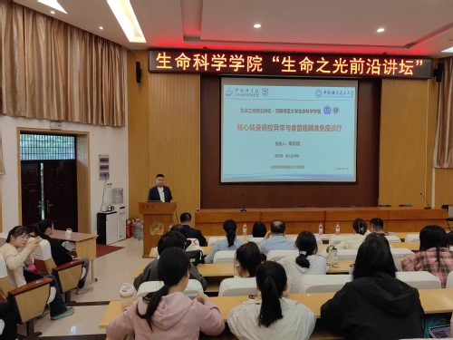 10月15日上午,应生命科学学院邀请,中国科学院合肥物质科学研究院蒋焱熠研究员莅临我校,作题为“核心转录调控异常与消化道肿瘤精准免疫诊疗”的学术报告,学院师生百余人参加。报告由学院副院长于飞主持。