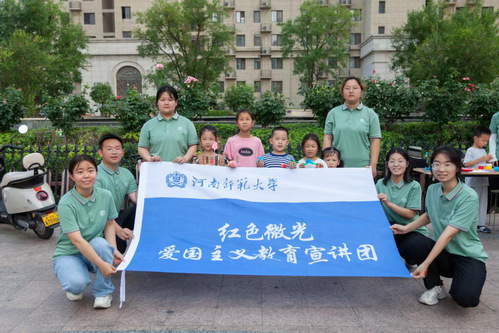 为弘扬红色精神,传承红色基因,培育青少年的爱国情怀,7月4日,我院红色微光爱国主义教育宣讲团走进河南师范大学家属院社区,开展“红色筑梦”活动。宣讲团成员与社区内众多小朋友积极互动,共同度过了一段富有意义又充满欢乐的时光。