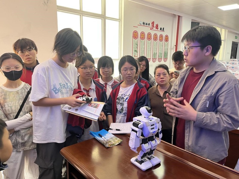 软件学院机器人协会通过双足机器人、机器狗现场编程演示与专业讲解,生动呈现AI技术在机器人领域的前沿应用。现场师生不仅能直观感受机器人精准的动作控制、智能交互能力,更在技术人员的引导下,亲手体验机器人编程操作,沉浸式领略人工智能的魅力。