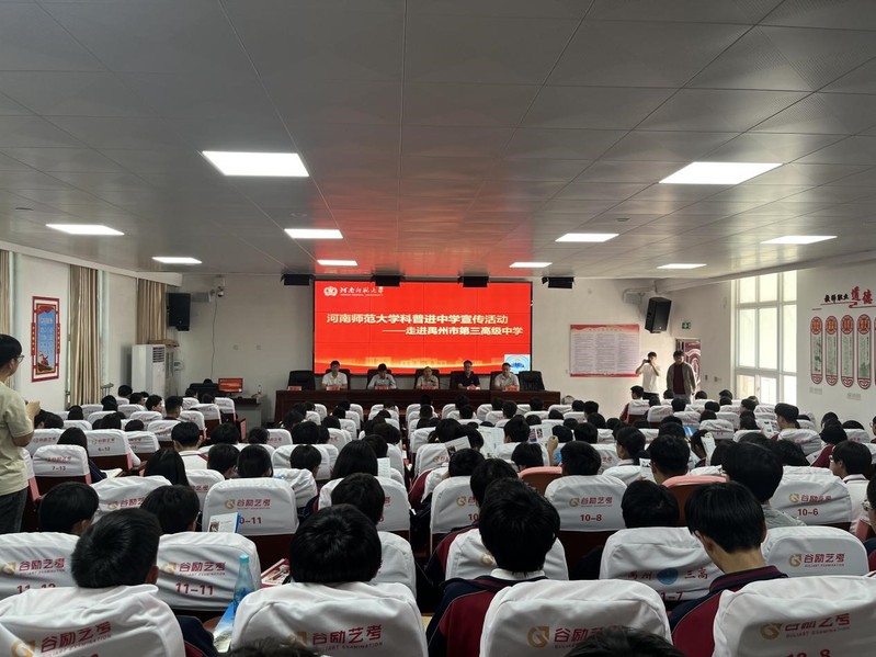 5月11日下午,河南师范大学软件学院副院长夏亮带队赴禹州市第三高级中学开展“科普进中学”宣传活动,禹州三高副校长白晓鹏、河南省名班主任工作室主持人张利鹏、200余名师生参加相关活动。