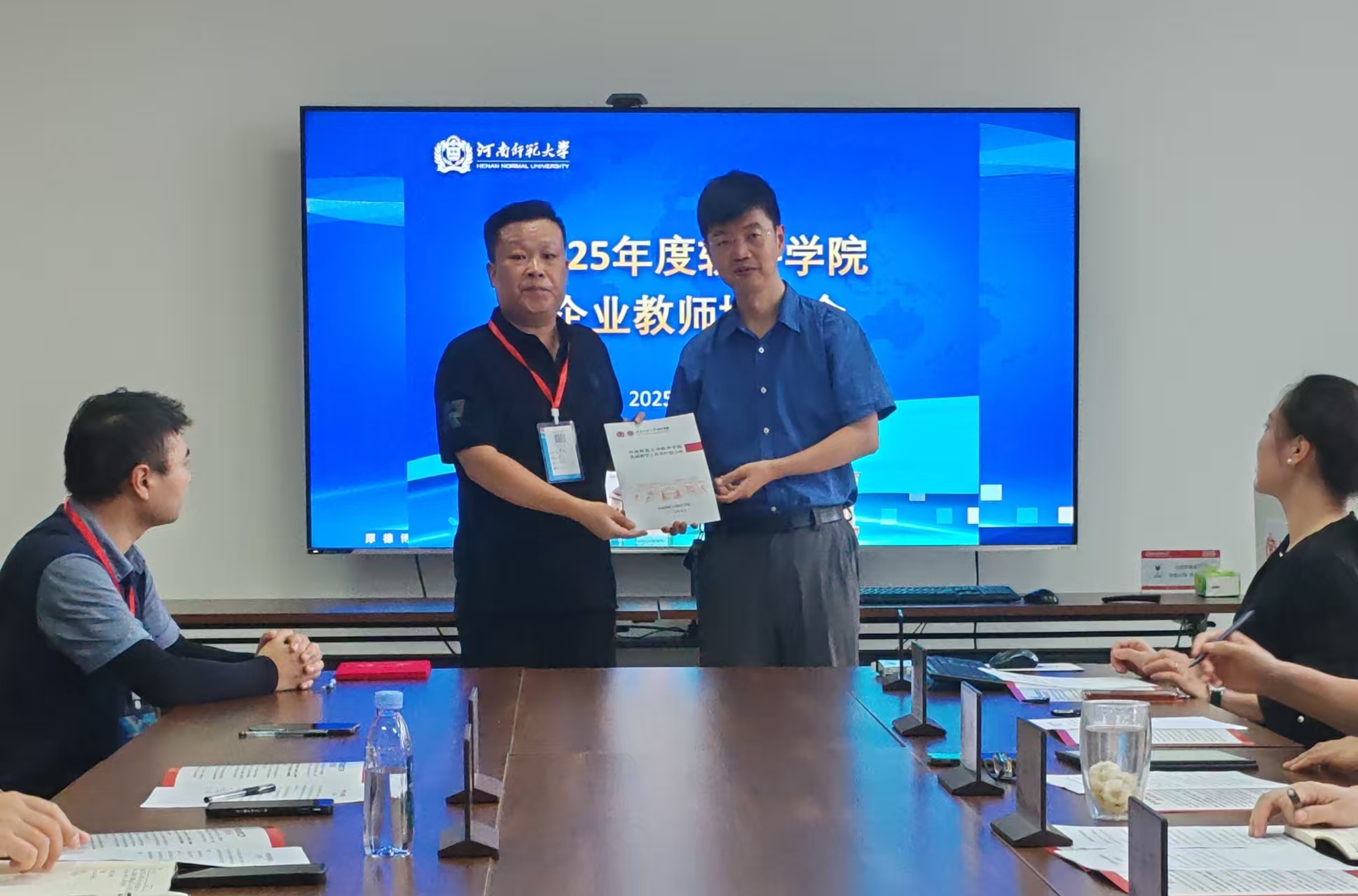 随后,全体企业教师现场签署《河南师范大学软件学院实训教学工作责任提示函》。夏亮与马静波分别代表校企双方完成提示函交接仪式,学院同时为企业教师颁发了外聘证书。