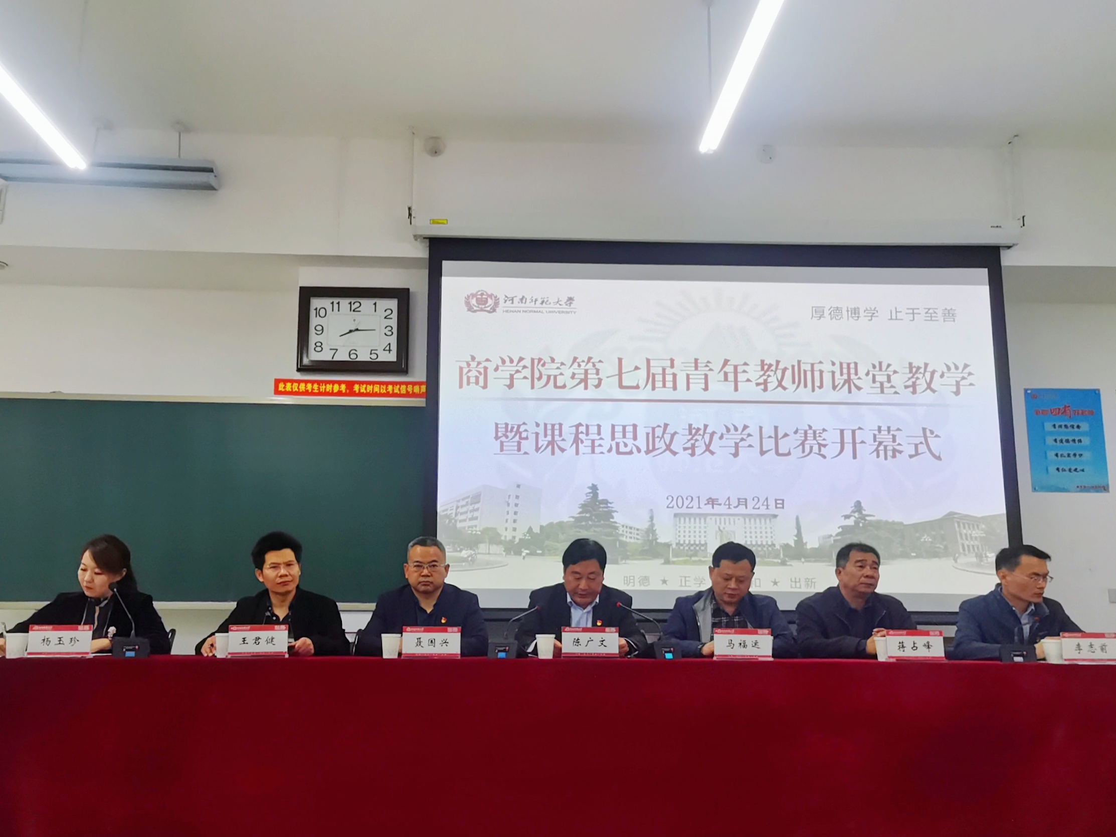 为引导青年教师进一步强化立德树人理念、锤炼教学基本功、掌握现代教学方式方法,提升广大青年教师的教学能力和业务水平,推动青年教师队伍建设,造就一支师德高尚、业务精湛、充满活力的专业化教师队伍,4月24日,商学院于文昌楼325教室举办第七届青年教师课堂教学暨课程思政教学比赛。校党委副书记陈广文现场观摩指导。校党委宣传部、教务处、教师教学发展师范中心等相关负责人出席比赛。校教学督导组专家、各单位教学名师等9人担任本次比赛的评委。学院相关负责人、全体任课教师及各年级学生代表观摩比赛。比赛由商学院党委书记李志前主持。