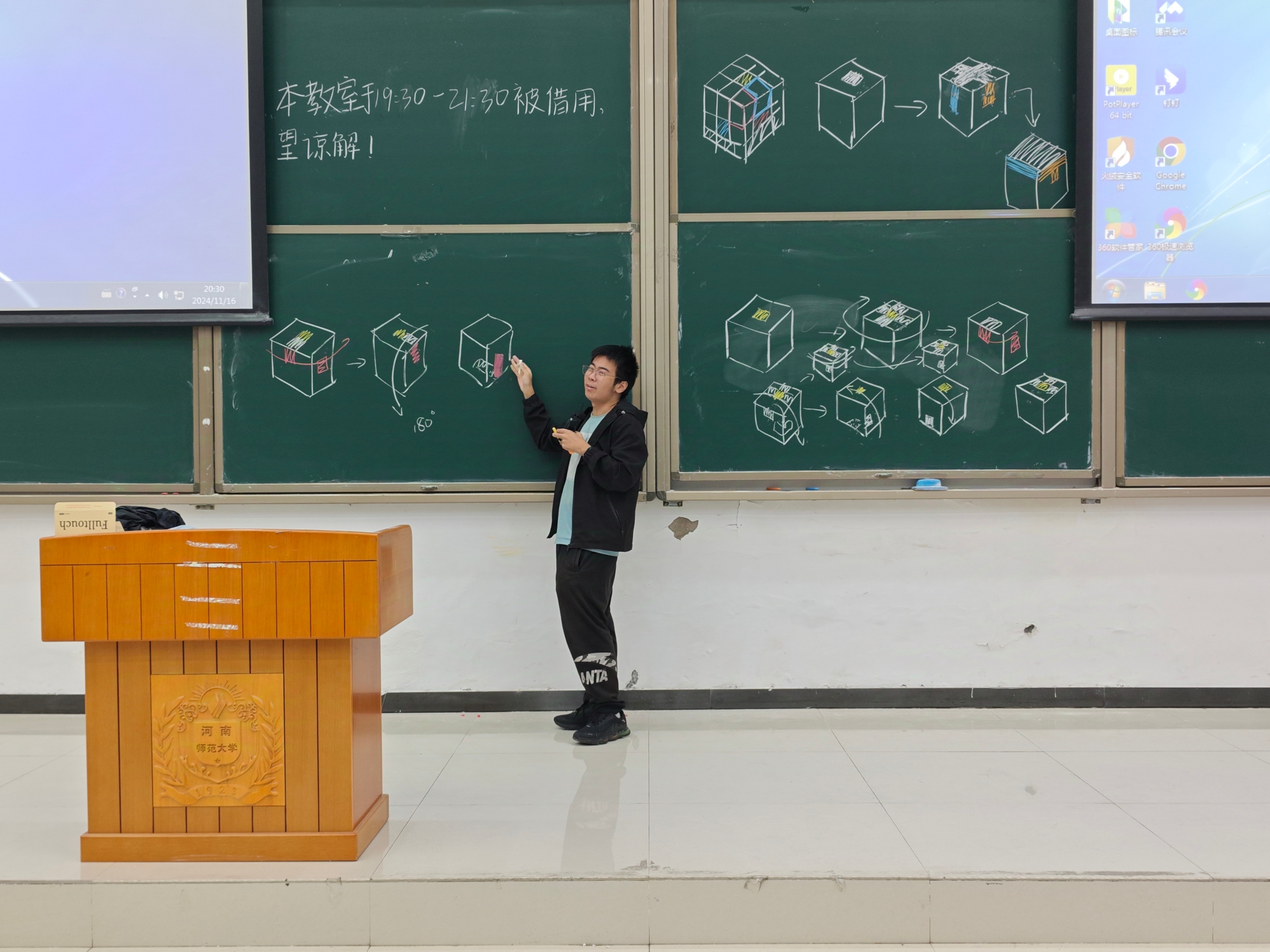 本次活动分为“知识讲解”和“操作指导”两个环节。在“知识讲解”环节中,负责人通过生动易懂的图画和热情洋溢的语言向同学们详细介绍魔方知识和操作技巧,仔细展示具体操作步骤以及技术要领,让同学们充分体会到魔方的无穷奥妙。同学们反响热烈,纷纷感慨魔方的神秘与奇妙,展现出对魔方的真切热爱。在“操作指导”环节中,负责人为同学们进行示范指导,总结和传授操作要诀。同学们跃跃欲试,大展身手,近距离感受魔方于指尖旋转跃动的乐趣,充分体验魔方灵活精巧的特点和酷炫独特的魅力。活动结束后,同学们互相交流经验感想,纷纷表示意犹未尽,并感慨在这次活动中不仅体会到三阶魔方还原的乐趣,还在学长的点拨下学会了魔方新知识和操作新技巧,深刻理解了魔方文化,结交了志同道合的玩伴,并表示将长燃理想明灯,永怀热爱之心,相约共赴每一场魔方之旅。