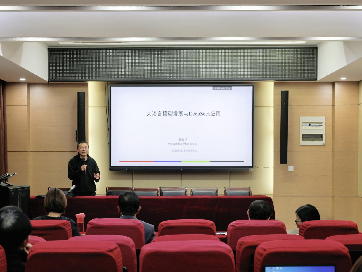 为培养教职工创新思维,引导教职工紧跟科技发展潮流,4月15日,商学院于学院119学术报告厅举行DeepSeek应用专题讲座。商学院全体教职工参加此次会议。商学院副教授袁国华担任本次讲座主讲人。