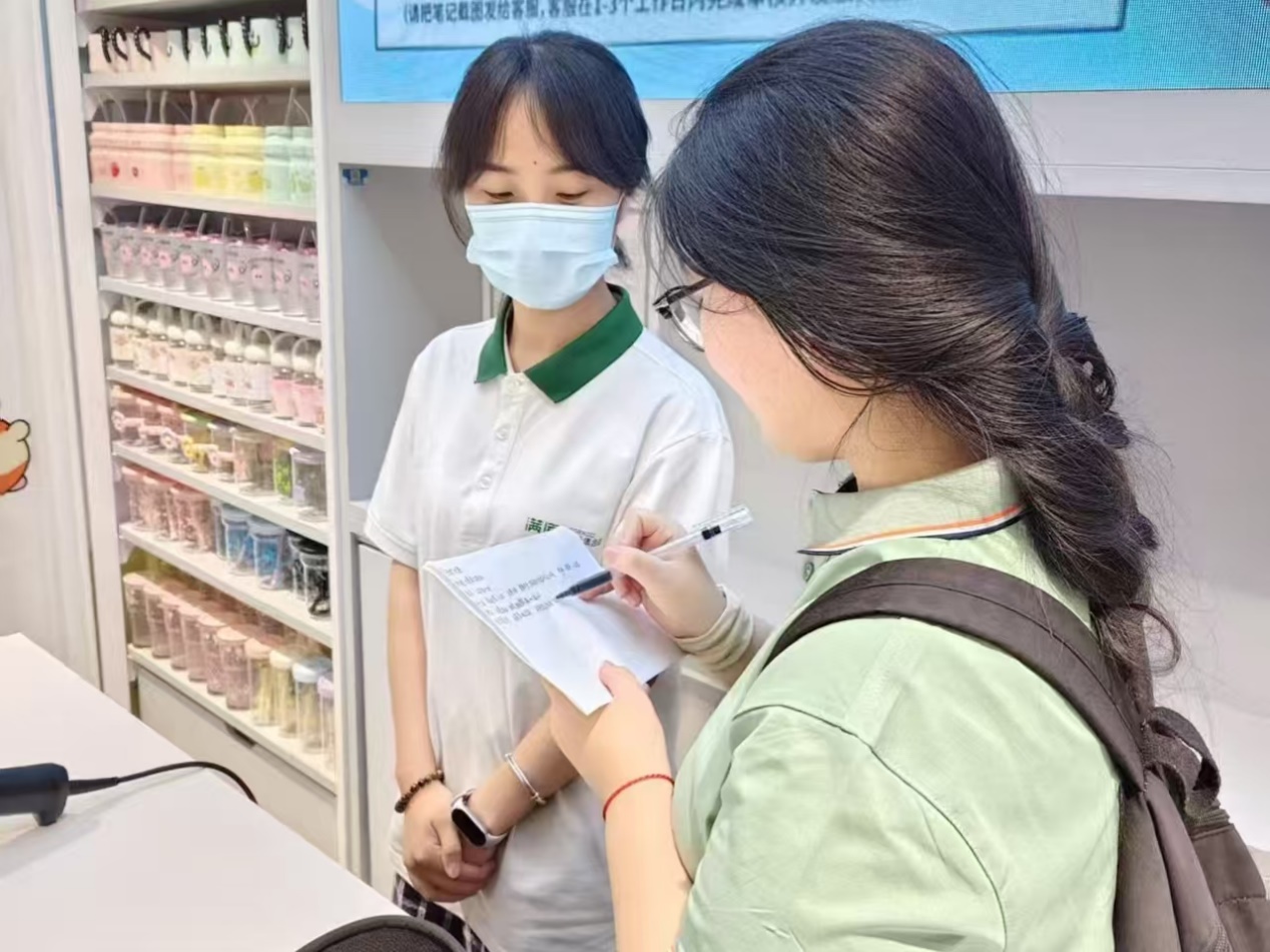 调研团深入走访多家特色商户,从快时尚潮流前哨到匠心文创空间,从网红茶饮吧台到智能家电体验馆,团队成员在与店铺负责人的交谈中深入体会不同商业形式的技术运营差异,感悟数智技术赋能实体零售经济的魅力。在一家融合本地文化的创意店铺,店主王女士轻触智能导购屏,为调研团成员们展示店铺数字化经营模式:“拥抱数字化工具如同为传统经营插上翅膀。你看这客流热力图,让我们精准调整货品布局;会员复购分析,又指导着个性化服务升级。”成员们凝神倾听,笔尖飞快记录,在商户生动的讲述与智能设备的演示中,触摸实体商业拥抱数智转型的清晰脉络。团队成员张一诺感慨道: “这次调研活动让我感受到那些跳动的数据不再是冰冷的符号,而是商业呼吸的节奏、顾客心跳的回声。”