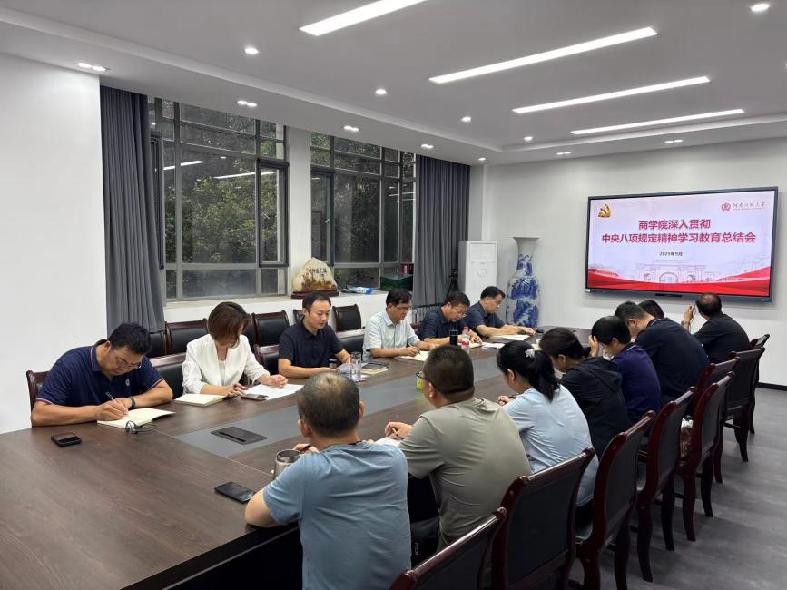 9月11日下午,商学院在学院224会议室召开深入贯彻中央八项规定精神学习教育总结会。传达学习习近平总书记关于作风建设的重要指示精神、贯彻落实上级相关会议和通知要求,根据学校党委工作安排,全面总结学院学习教育成效,部署巩固拓展学习教育成果、推动作风建设常态化长效化任务。学院全体党政领导班子成员、科级干部、党支部书记参会,会议由学院党委书记许天心主持。