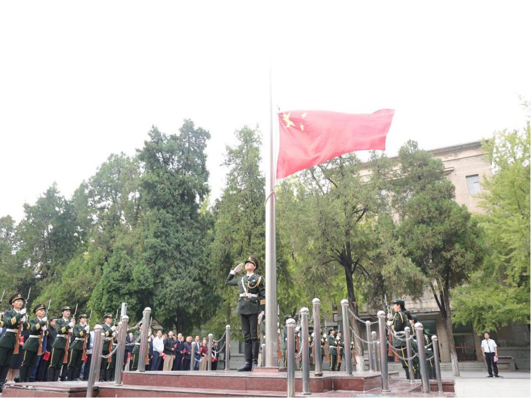 葛照金在主持仪式时表示,在庆祝新中国成立76周年的庄严时刻,升国旗仪式是对祖国母亲的深情告白,全体青年学子要立报国之志,把准人生航向,在“厚德博学,止于至善”的校训熏陶中筑牢信仰之基,让青春的航向始终与祖国发展同向同行;要怀爱国之情,勇担时代重任,心怀“国之大者”,在民族复兴的征程中书写青春华章;要练强国之能,展现青春作为。以“请党放心,强国有我”的铮铮誓言为动力,在强国建设、民族复兴伟业中贡献青春力量。