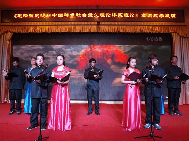 近几年来,河南师范大学马克思主义学院充分利用我省红色资源数量大、精品多、区域特色鲜明的特点,结合各门思想政治理论课的课程特点,发掘红色文化资源蕴含的马克思主义理论教育价值,不断强化思想政治理论课实践教学环节,初步探索形成了课堂叙事性教学、基地体验式教学、平台情景式教学相互渗透、有机融合、功能互补的立体化实践教学模式,大大提高了思想政治理论课的感染力和实效性。所谓课堂叙事性实践教学,指利用红色文化资源包含的令学生敬仰、认同、感动的“红色故事”,按照小故事大主题、语言通俗易懂、贴近学生实际的原则,结合每个章节的教学目的和教学内容,精心提炼不同“红色故事”的主题,通过任课教师在课堂上的精彩讲述,生动诠释红色精神的历史积淀和时代内涵,促进红色精神、红色文化、红色基因在大学生中的传承,强化他们对社会主义核心价值观的认同。所谓基地体验式教学,指深入挖掘我省丰富红色文化资源的教育价值,先后在红旗渠和“新乡先进群体”精神发源地挂牌“河南师范大学思想政治理论课实践教学基地”,每学期选拔学生代表到实践教学基地现场教学、调研访谈,使学生在走访中了解和感悟先进事迹,在体验中追寻革命先辈的足迹,在潜移默化中接受中国共产党革命精神教育。所谓平台情景式教学,指利用校内集开发、移植、整合、展演、制作于一体的多功能思想政理论课实践教学平台,把相关红色文化资源精心设计成若干主题,采用“历史场景再现”“舞台模拟”“模拟教学”“虚拟实践”等,让学生自己把红色文化资源代表人物、著名故事、历史事件、调研报告、采访内容等,做成教学案例或改编成不同艺术形式,搬上舞台自导自演,通过同辈群体的演绎,将教师的“教”演化在教学活动的策划之中,将学生的“学”转换在探究与体验的行动之中,使大学生在身临其境中增强了学习的主动性和创造性,实现了思想政治理论课实践教学的全覆盖。