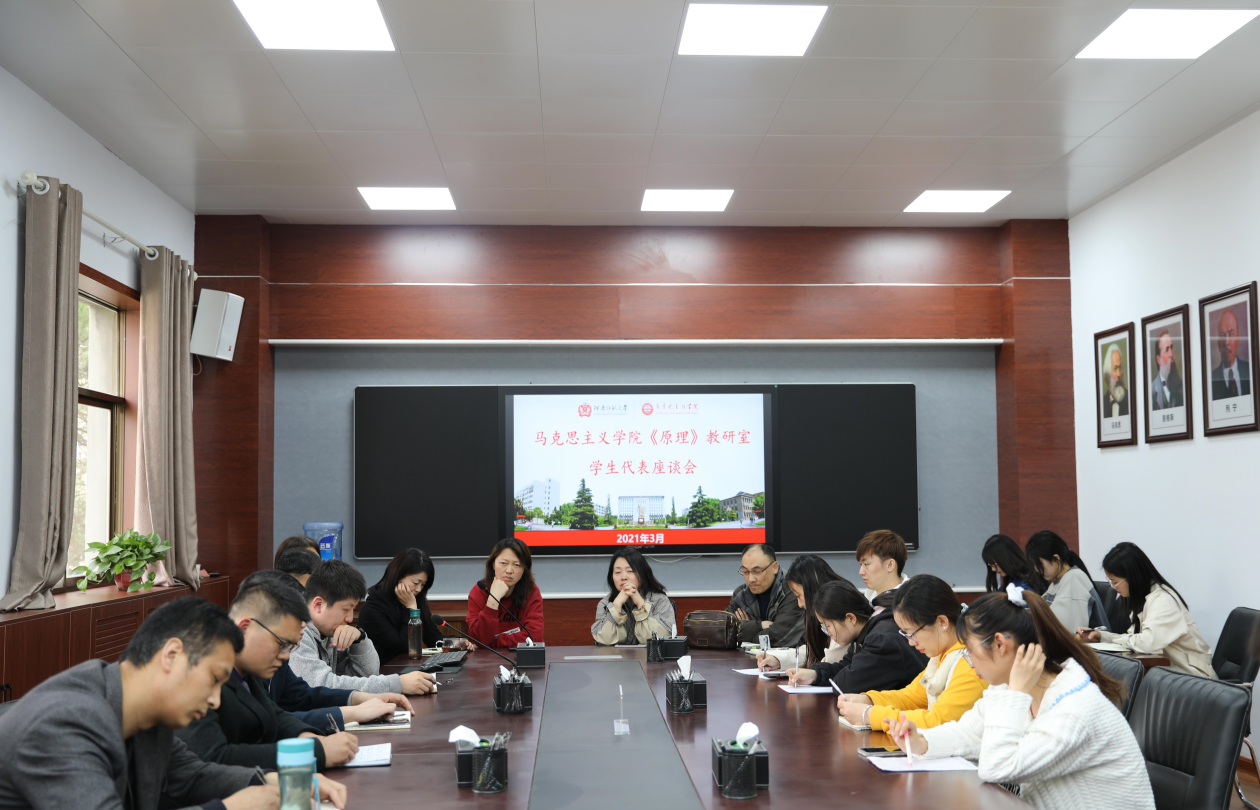 3月30日下午,马克思主义学院《马克思主义基本原理概论》教研室学生代表座谈会在学院201会议室举行。副院长曲嘉,《原理》教研室全体教师,来自全校各学院40余名学生代表参加。会议由《原理》教研室主任米庭乐主持。