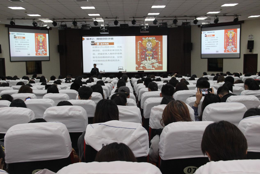 张阳警官首先介绍了本学期开学以来新乡市高校大学生受到电信网络诈骗的案例,用一个个具体的数字向在座同学强调防范电信网络诈骗的重要性和紧迫性。然后具体讲解了电信网络诈骗常见类型和基本手段,结合近期在校园内发生的具体案例分析了电信诈骗的特点和常用“套路”,并针对学生容易上当受骗的刷单、虚假交易、客服退款诈骗进行了重点讲解。他提到,电信诈骗案件有网购刷单、冒充客服、冒充公检法人员、利用微信QQ冒充熟人、“校园分期”购物诈骗、“伪基站”冒充银行发送诈骗短信等多种类型,具有形式多变、随机性强、分布范围广的特点,且追回被骗资金相当困难。通过发生在大学生们身上的鲜活的案例剖析,张警官提醒学生提高警惕,注意核实信息,不轻信、不盲从,提高电信诈骗的识别防范意识。最后,张警官与现场同学进行了互动,还向学生们介绍了“金钟罩”小程序的使用,提醒学生们通过使用小程序降低电信诈骗的发生率。通过本次专题讲座,同学们纷纷表示,在今后日常生活中将增强安全意识、提高反诈能力,做到不贪、不信、不转账,同时也将把讲座中学习到的识别预防诈骗技巧向自己的亲人、朋友分享。