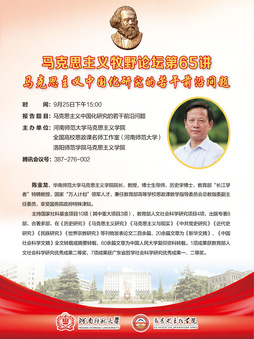 马克思主义牧野论坛 华南师范大学陈金龙教授讲学通知