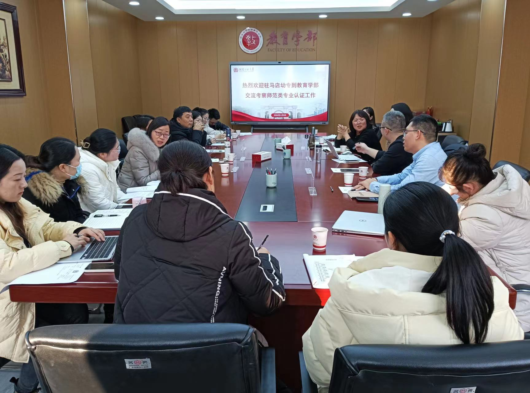 1月9日上午,驻马店幼儿师范高等专科学校学术副校长刘晓红、学前教育学院院长王文选、副院长李晓一行11人来我部田家炳教育书院801就师范类专业认证工作进行交流研讨。教育学部副部长衡书鹏,学部已通过师范类专业认证的相关负责人等参加了交流研讨会,会议由教育学部副部长卜彩丽主持。