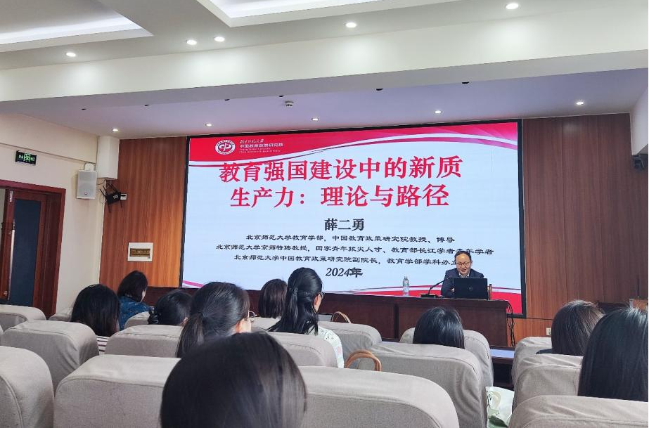 4月28日上午,应河南师范大学教育学部邀请,北京师范大学薛二勇教授做客“梦瀛名家讲堂”,在田家炳教育书院819会议室作“教育强国建设中的新质生产力:理论与路径”专题讲座。本次讲座由教育学部副部长苗学杰主持,百余名学部师生参与学习。