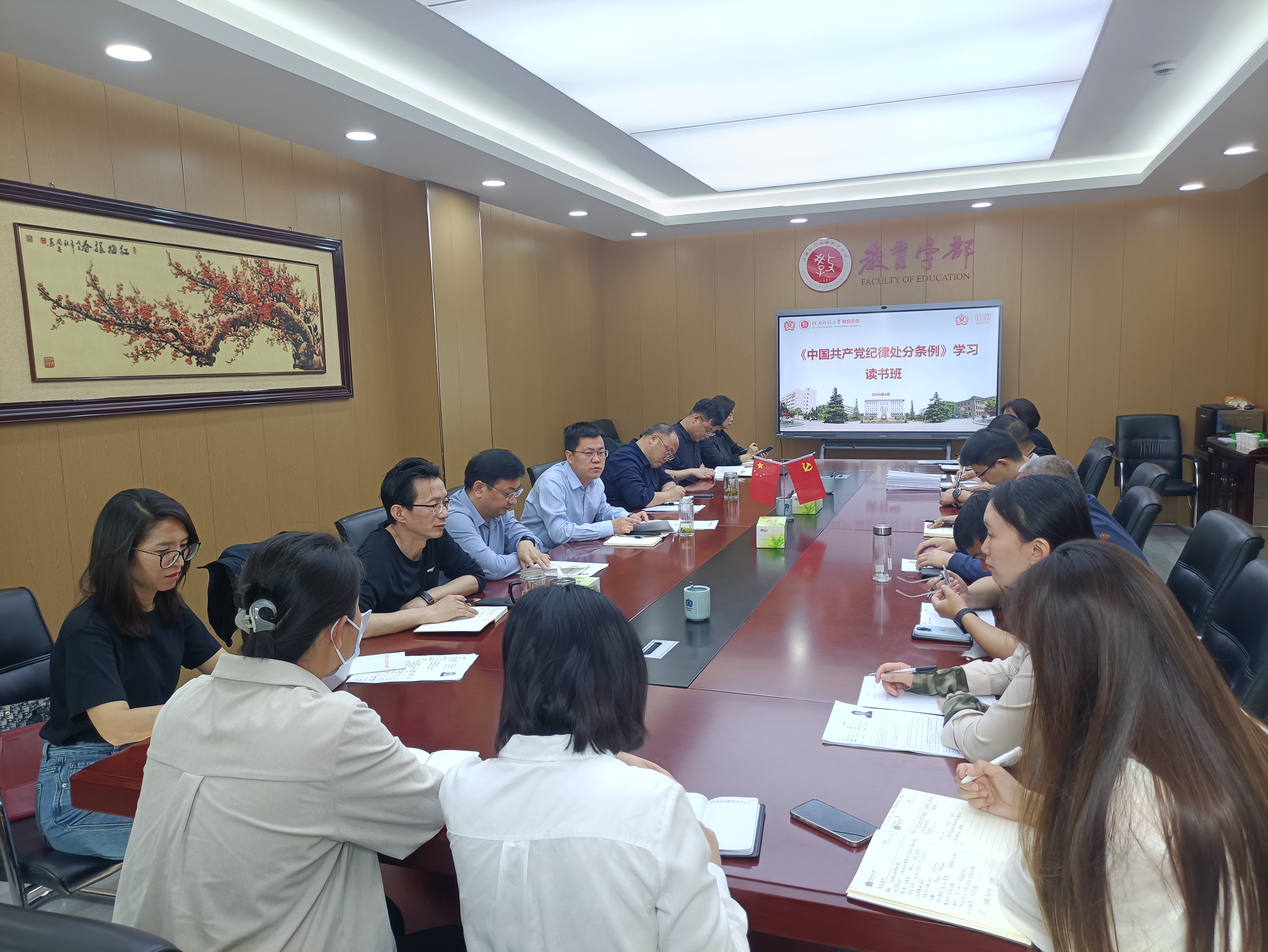 4月28日至29日,教育学部在田家炳教育书院801会议室召举办党纪学习教育读书班,专题学习《中国共产党纪律处分条例》。学部党委委员、党支部书记、科级干部代表等参加读书班。读书班由学部党委书记陈勇主持。