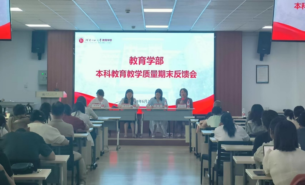 6月25日下午,教育学部在田家炳602会议室召开本科教育教学质量期末反馈会。教务处教学质量管理科科长刘炳辉,校级督导员外国语学院赵攀、计算机与信息工程学院李功丽和教育学部同行督导员刘小先莅临本次会议。会议由副部长卜彩丽主持,学部党政领导及全体教师参加会议。