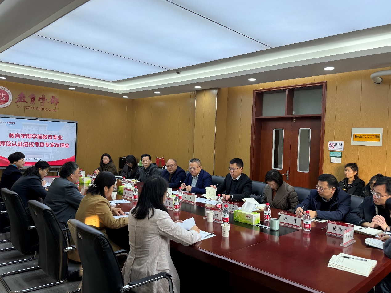 12月7日上午,学前教育专业师范类专业认证专家意见反馈会在田家炳教育书院801召开。学前教育专业认证专家组全体成员,校党委常委、副校长聂国兴出席会议。教育学部领导班子、教务处工作人员、学前教育专业全体教师以及学部相关干部、骨干教师等参加会议。反馈会由认证专家组组长、安徽省教育评估中心主任汪开寿主持。