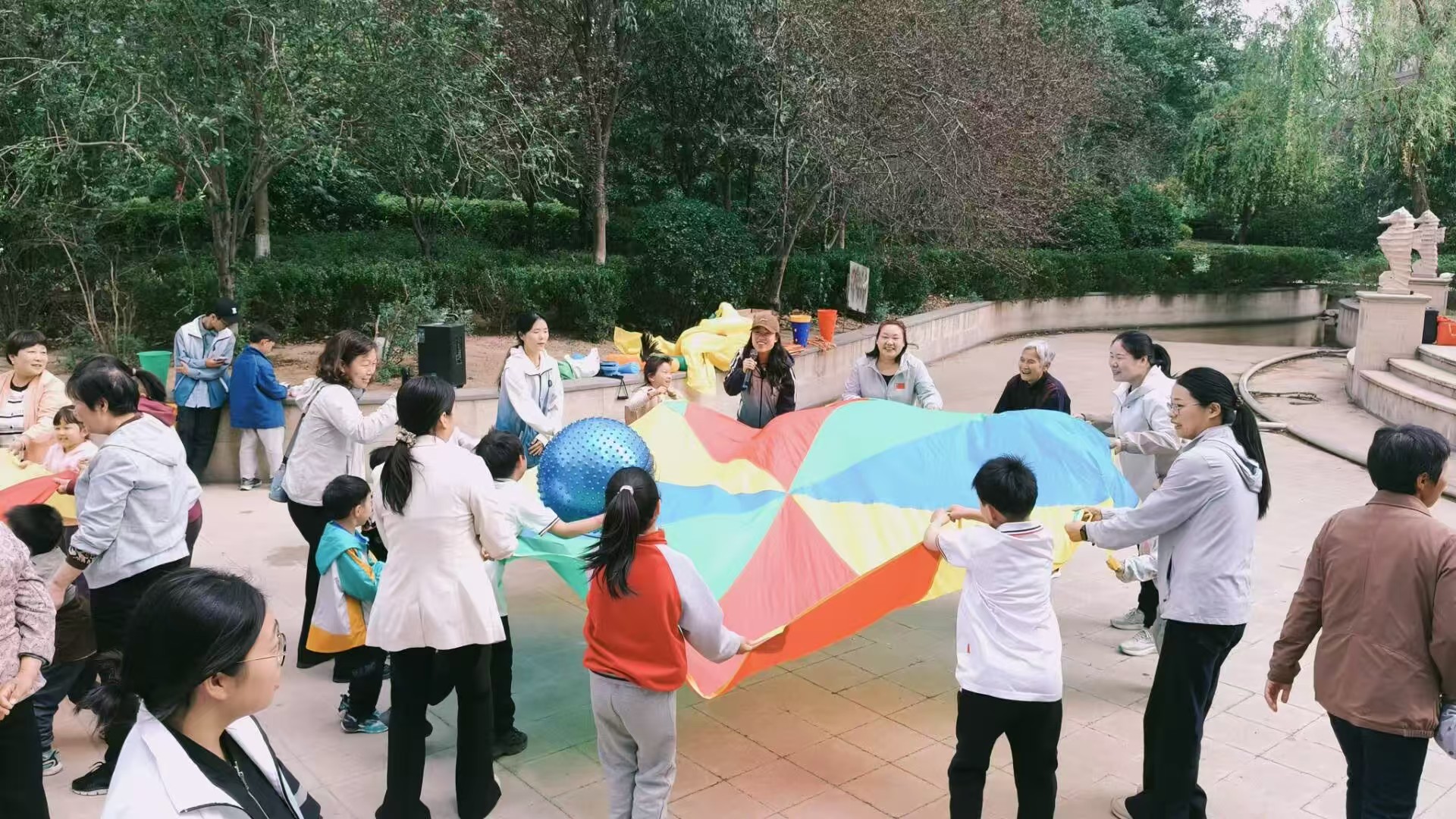 在负责人徐良苑、唐香玉等老师带领下,师生30余人来到新乡市东风路剑桥城社区,为剑桥城社区100余名小朋友及其家长,精心打造了一场“家门口的成长盛宴”。活动划分为美工创意、绘本亲子共读、感统训练及教育咨询指导四大区域。美工创意区,志愿者们引导孩子们用气球编织出形态各异花朵、小动物和皇冠等,并共同创作手绘风车,激发了孩子们的创造力。绘本亲子共读区,家长与孩子们共同沉浸在故事的海洋中,深刻体会亲子共读的深远意义。感统训练区,彩虹伞、体能大回环、“拍蚊子”、彩虹桥等趣味游戏轮番上演,孩子们在欢声笑语中享受了游戏的乐趣,锻炼了平衡感及专注力。教育咨询指导区,学前教育专业的教师现场答疑解惑,为家长们提供了科学的、专业的育儿指导。