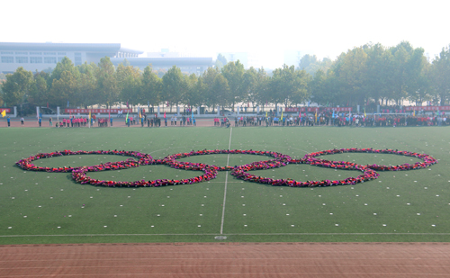 李雪山宣布我校第五十四届运动会开幕式正式开始。在庄严的国歌声中,五星红旗冉冉升起,随后伴着校歌,升起了校旗和运动会会旗。