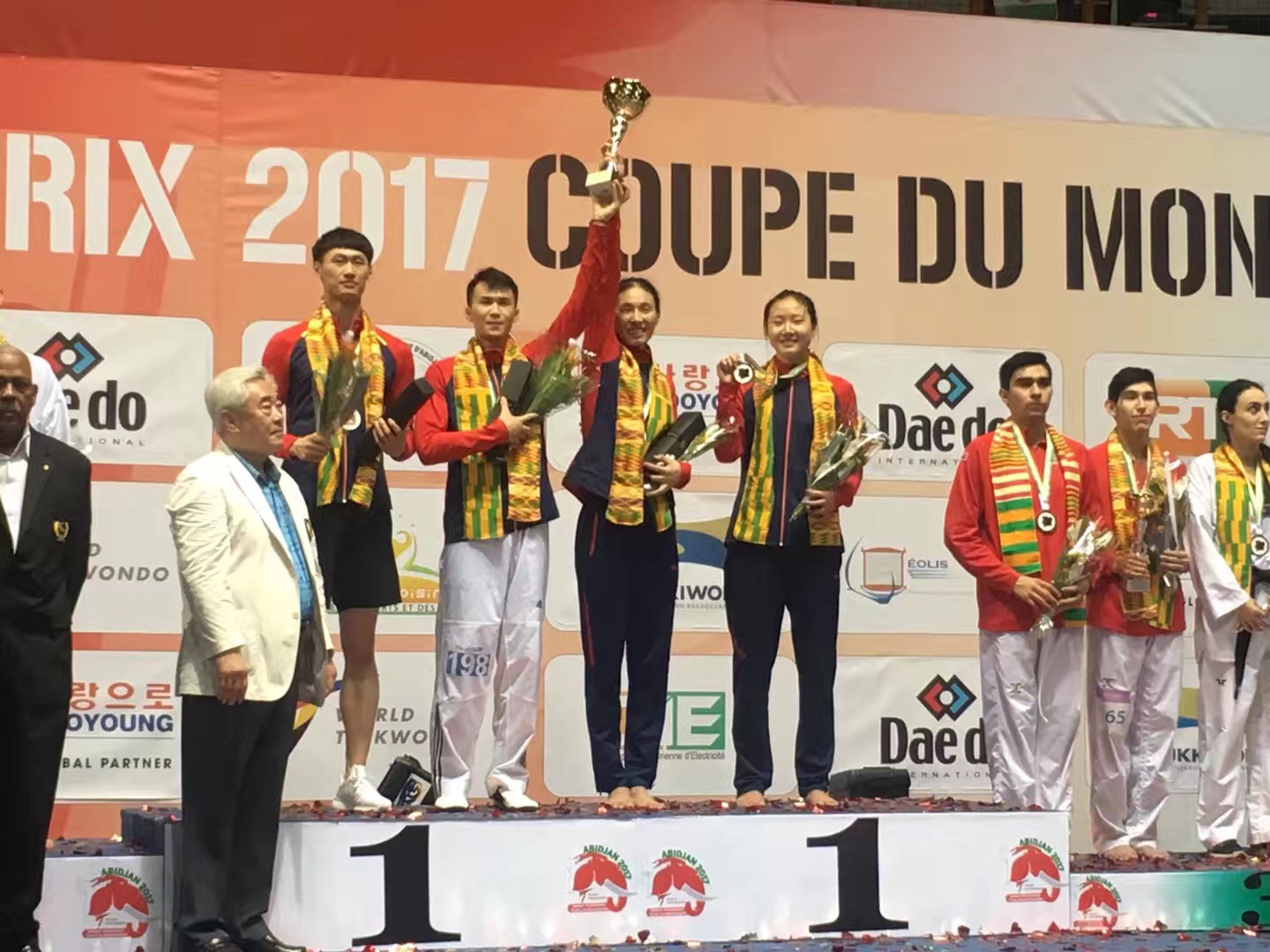 2017年跆拳道世界杯团体赛当地时间12月6日在科特迪瓦经济首都阿比让落下帷幕。我校体育学院2016级运动训练专业学生彭昭杰代表中国队参加比赛,最终力克强敌获得世界冠军。