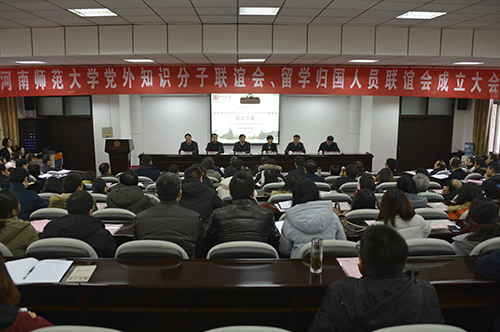 1月9日上午,我校党外知识分子联谊会(以下简称“知联会”)、留学归国人员联谊会(以下简称“留联会”)成立大会在勤政楼第四会议室举行。党委副书记、工会主席臧振春,河南省委高校工委、省教育厅组干统战处处长冯轩友,河南省委统战部党外知识分子工作处正处级调研员邓清,河南省委高校工委、省教育厅组干统战处副处长高峰出席大会。知联会和留联会筹备工作领导小组成员,各基层党委、党总支书记,校内各民主党派代表,知联会和留联会全体会员参加会议。会议由党委常委、统战部部长张进江主持。