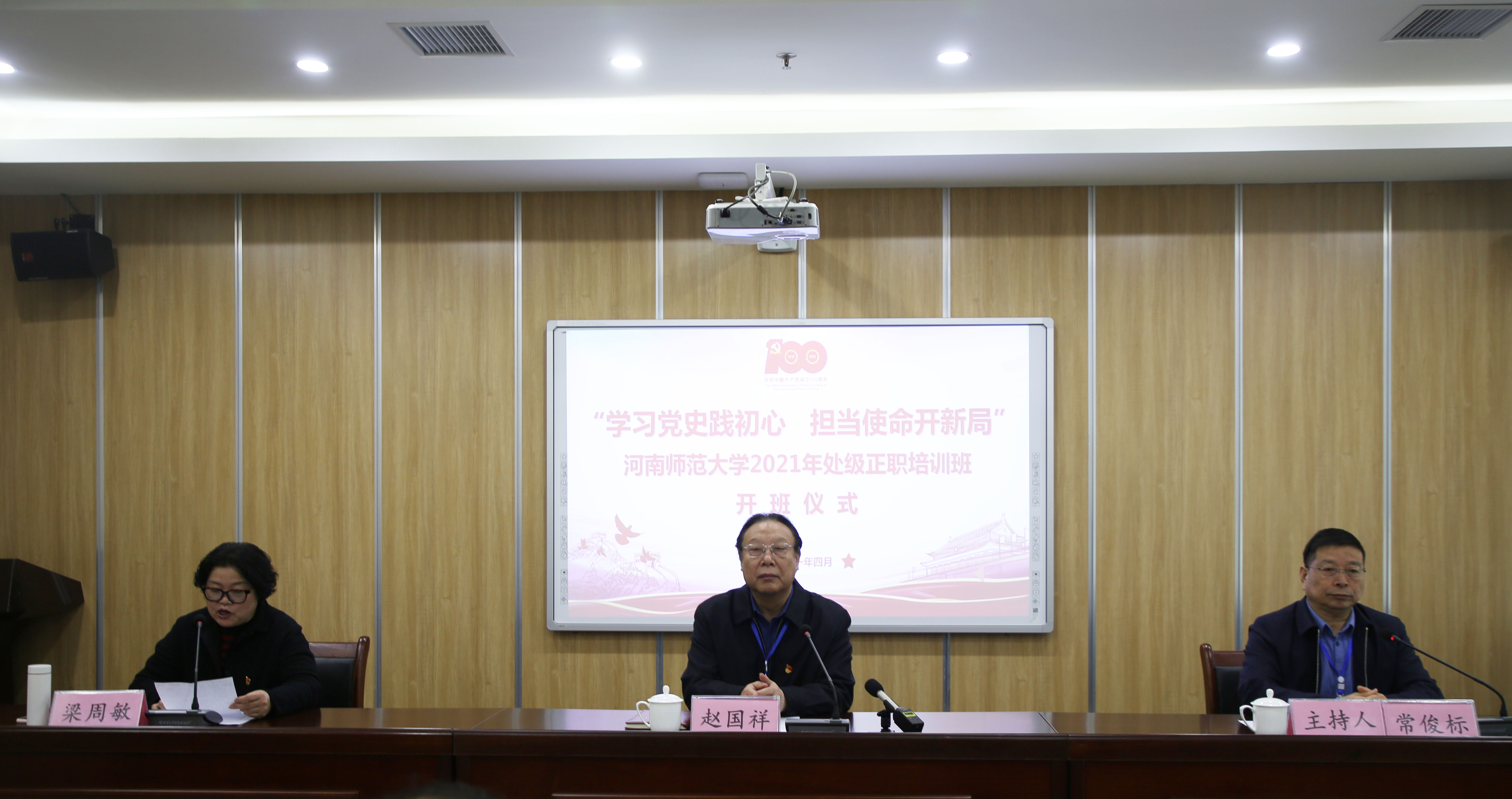 4月19日上午,我校2021年处级正职“学习党史践初心,担当使命开新局”专题培训班在新乡乡镇干部学院正式开班。新乡乡镇干部学院负责人、学校党政领导班子成员、校内各单位主要负责人参加了开班仪式。校长常俊标主持开班仪式。
