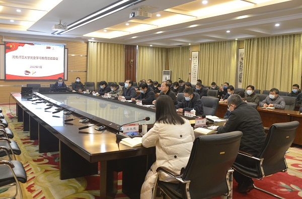 1月21日上午,我校在勤政楼第三会议室召开河南师范大学党史学习教育总结会议,深入学习贯彻习近平总书记重要指示精神,总结学校党史学习教育开展情况,对巩固拓展党史学习教育成果作出部署。校党委书记赵国祥作学校党史学习教育总结报告,校党委副书记、工会主席梅宪宾主持会议。会议采用线上线下相结合形式进行,校领导、校党史学习教育领导小组成员在现场参会,其他副处级以上领导干部、基层党支部书记、师生代表通过腾讯会议平台参加会议。