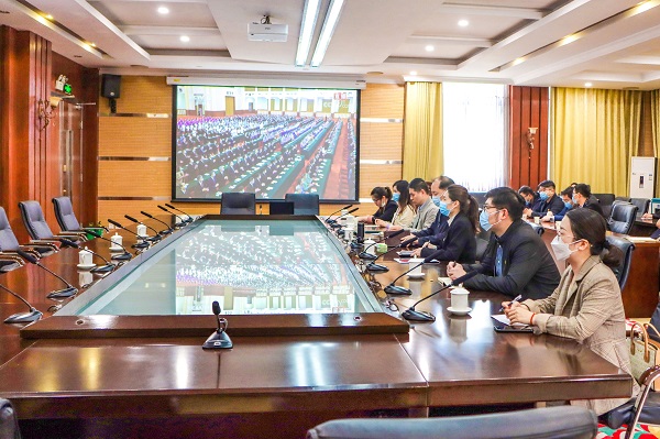 5月10日上午,庆祝中国共产主义青年团成立100周年大会在北京人民大会堂隆重举行。中共中央总书记、国家主席、中央军委主席习近平出席大会并发表重要讲话。我校采取线上线下相结合的方式,组织师生通过电视、网络、手机等渠道认真观看收听大会直播。校党委副书记、工会主席梅宪宾,校团委工作人员、各学院(部)团委书记、学生代表在勤政楼第三会议室收看直播。习近平总书记的重要讲话在全校师生中引起热烈反响。