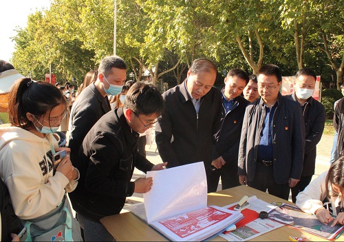为加强学生的思想引领,喜迎党的二十大胜利召开,10月10日下午,“喜迎二十大,青春心向党”剪纸作品展在东区中心花园举办。校党委副书记、工会主席梅宪宾出席活动并讲话。相关职能部门、计算机与信息工程学院负责人及学生代表参加此次展览。