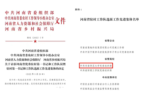 主动服务大局,助力脱贫攻坚乡村振兴。扎实做好定点帮扶辉县市吴村镇柳湾村和校地结对帮扶商城县等工作,充分发挥我校在智力帮扶、科技帮扶、人才帮扶、产销帮扶等方面的优势,在开展技能培训、产业增收覆盖、乡村文化繁荣、基础设施提升、推动乡村治理等方面持续下功夫,推动脱贫攻坚和乡村振兴取得扎实成效。我校多次在定点帮扶和校地结对帮扶工作年度考核中获得“好”等次,并荣获河南省驻村工作队选派工作先进集体,在河南省2021年“互联网+抗灾情 战疫情 促销售 助消费”系列活动中被评为先进单位。