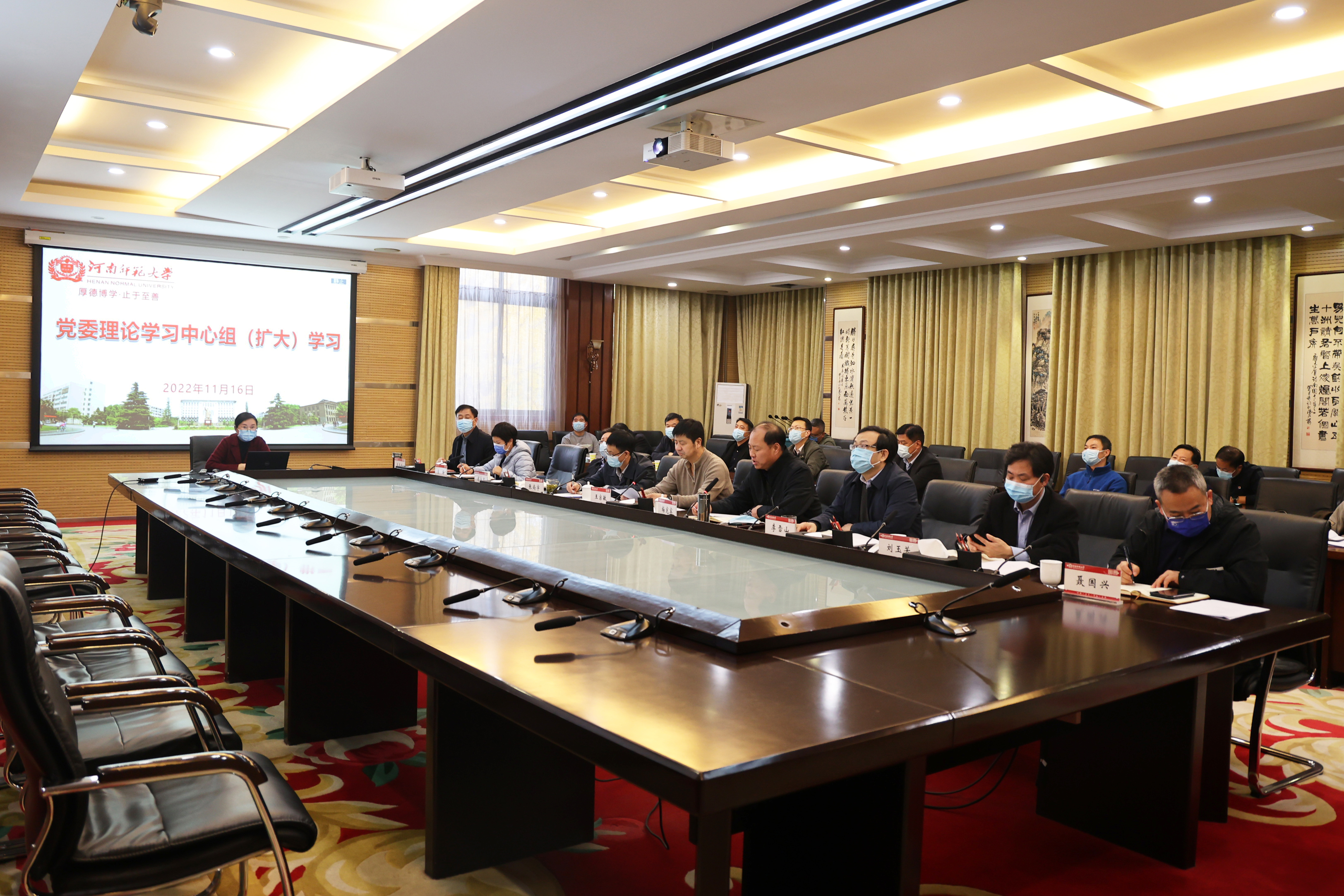 11月16日下午,我校召开党委理论学习中心组(扩大)学习会专题学习党的二十大精神,会议邀请中国社会科学院马克思主义研究院党委书记辛向阳在线做辅导报告。校党委书记、校长王宗敏主持学习会并讲话。全体校领导、党委委员、纪委委员、党委职能部门负责人在勤政楼第三会议室主会场参加学习。学校副处级以上干部,马克思主义学院师生代表参加线上学习。