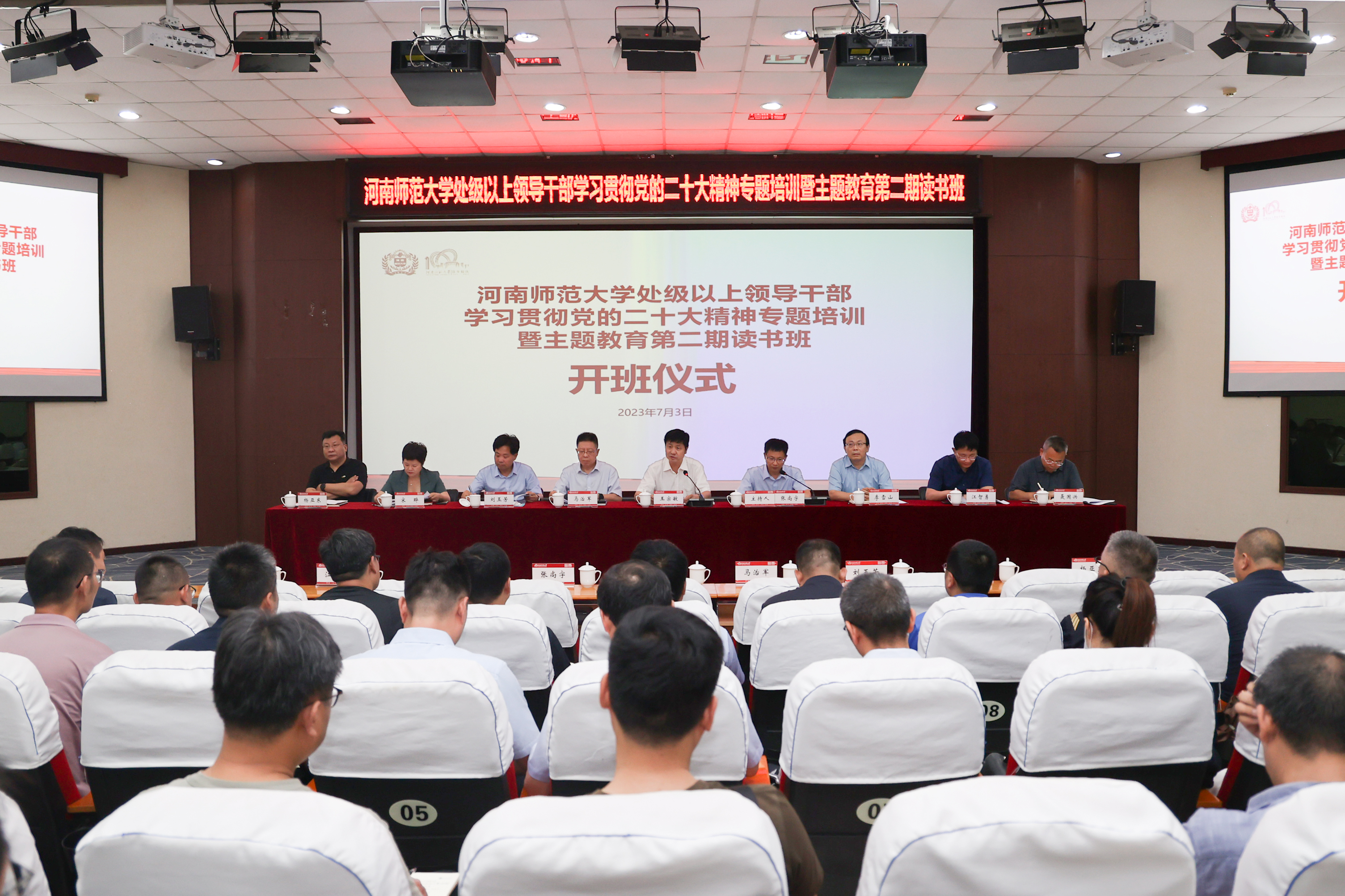 7月3日,我校学习党的二十大精神专题培训暨主题教育第二期读书班开班,开班式在物理北楼报告厅举行。校党委书记、校长王宗敏出席仪式并讲话,校领导及全体处级干部参加。开班式由校党委副书记张尚字主持。