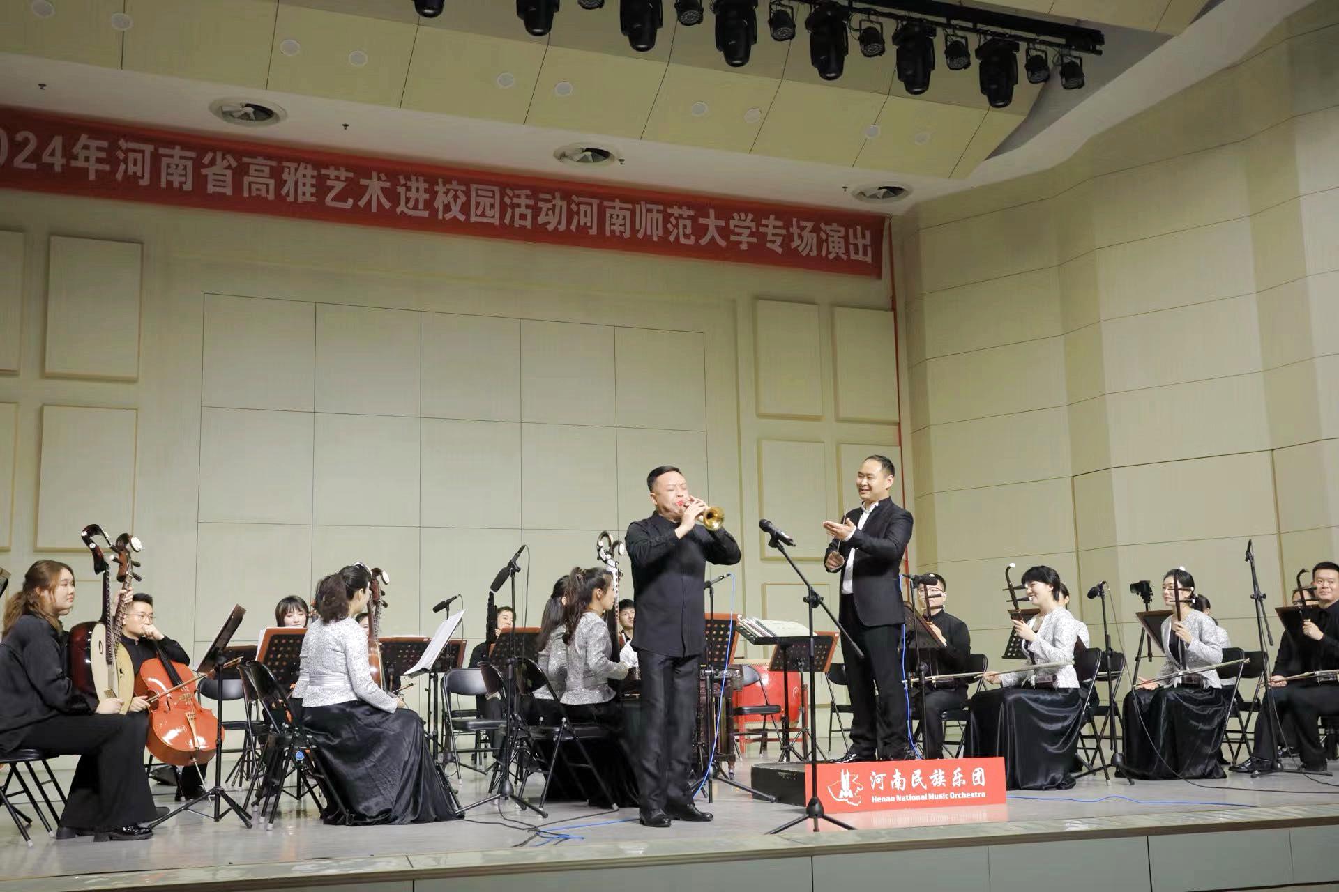 11月15日晚,由河南省教育厅、河南省文化和旅游厅主办、河南师范大学承办的2024年河南省“高雅艺术进校园”河南师范大学专场演出《国韵芬芳——民族音乐会》在我校帕瓦罗蒂音乐厅举行。校党委常委、副校长聂国兴出席活动并致辞。著名二胡演奏家、国家二级演奏员成文文,校党委宣传部、党委学工部、党委研工部、校团委、教务处、艺术教育委员会办公室等职能部门负责人及现场500余名师生观看了演出。