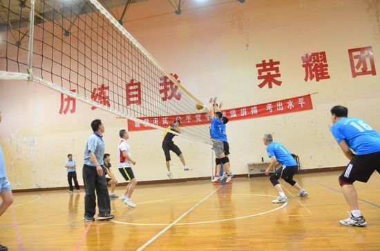 下午5时许,随着裁判员一声哨响,比赛正式开始。本着友谊第一、比赛第二的精神,双方队员积极参与,充分发挥各自的竞技水平,配合默契,尽情展示自己的球技,现场气氛热烈、场面精彩、高潮迭起,赢得了两个学校观看者阵阵掌声,展现出两校教职工团结、和谐、勇于拼搏的精神风貌。河南财经政法大学教职工排球队的到来,提高了双方队员身体素质和排球竞技水平,进一步加强了我校与河南财经政法大学的沟通交流,增进了友谊。