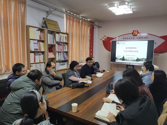 12月18日下午,音乐舞蹈学院在院五楼人民文艺工作坊召开工会委员会议,学院全体工会委员及小组长参加,会议由院工会主席徐忠奎主持。